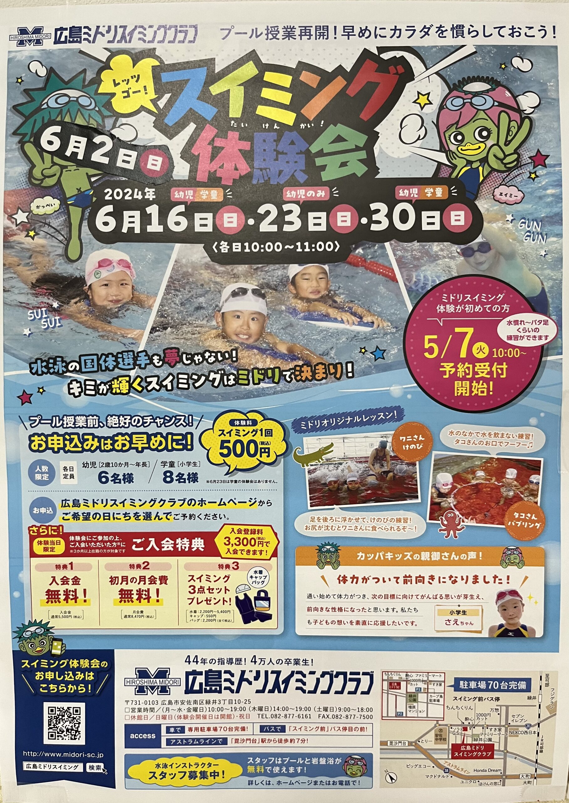 広島ミドリスイミングクラブには、長年の歴史を積み重ねてきた実績とベテランコーチ陣による確かな指導力があります。水に慣れていない初心者から全国大会優勝を目指す上級者まで、年齢・性別関係なくー人ひとりの個性に合わせたしッスン を行っています。