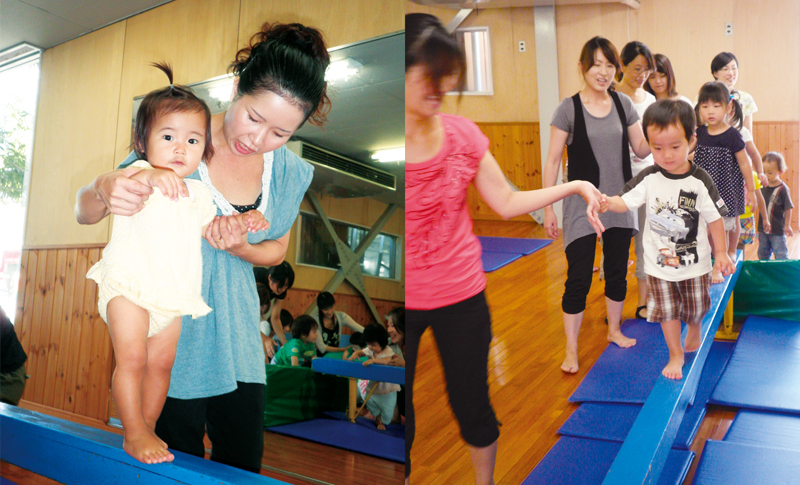 マットや平均台などを使って、走る・跳ぶ・投げる・バランスをとるなど、お家ではできないダイナミックな体の動きのある、遊び要素満載の多彩なプログラムが好評です。 体を使った遊びは、体づくりや脳の発達への良い刺激になり、心身ともに大きな成長が期待できます!