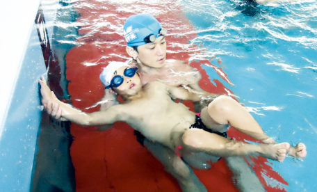 広島ミドリスイミングクラブのベビースイミングでは、水泳だけではなく、陸上で体を動かす「体操レッスン」も取り入れています。 [水泳とは別に週に2回まで参加可能